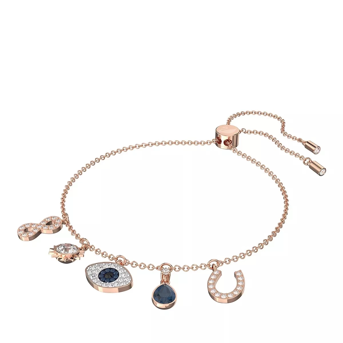 Swarovski Symbolic Infinity Evil Eye And Horseshoe Gold-tone Blue Armband